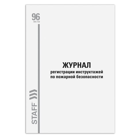 Журнал регистрации инструктажа по пожарной безопасности, 96 л., картон, типографский блок, А4, 200х275 мм, STAFF, 130239