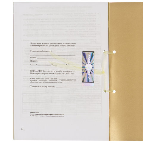 Журнал регистрации вводного инструктажа, 32 л., сшивка, пломба, обложка ПВХ, 130204