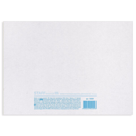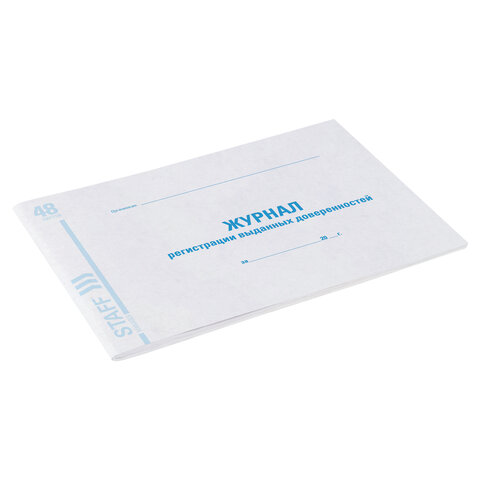 Журнал регистрации выданных доверенностей, 48 л., картон, блок офсет, А4 292х200 мм, STAFF, 130081