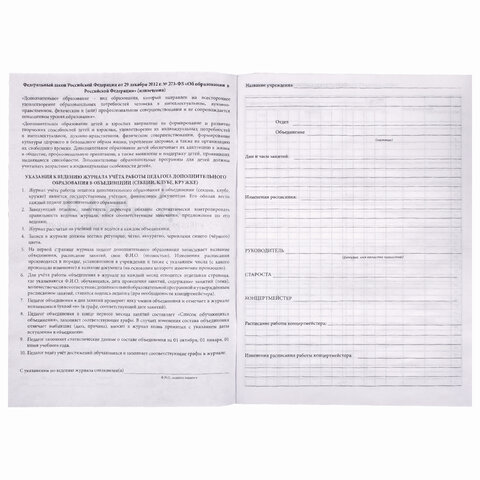 Журнал учёта работы педагога дополнительного образования, 48 л., картон, офсет, А4 200х280 мм, STAFF, 130243