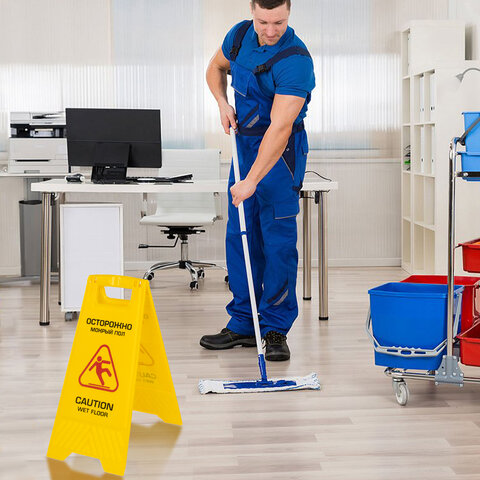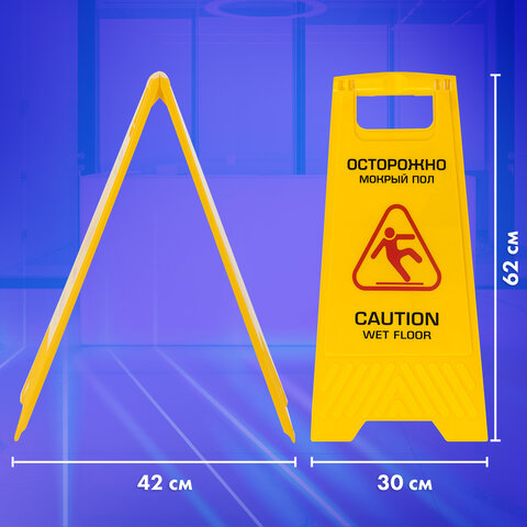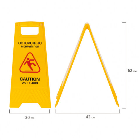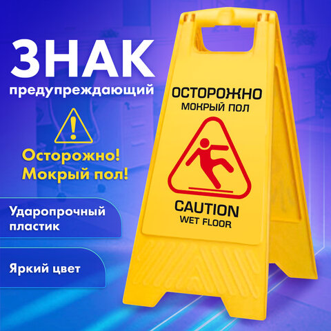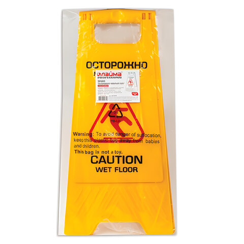 Знак "Осторожно! Мокрый пол!" LAIMA PROFESSIONAL предназначен для привлечения внимания и обеспечения безопасности в местах массового скопления людей. Выставляется при проведении влажной уборки.